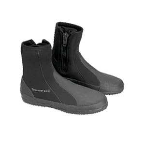 Product Description : Neoprene booties for adults. These zipup boots keep your feet warm and protected in the water, whether kayaking, snorkeling, bodyboarding, surfing, or scuba diving. Neoprene with TERRY PLUSH inside Vulcanized TRIPLE THICK rubber sole designed for extremely rocky shores Four seam (2 front, 2 heel) pattern Noncorrosive Delrin #10 heavyduty zipper Rubber toe heel cap for protection Rubber foxing around sole for stability Packaged in poly bag